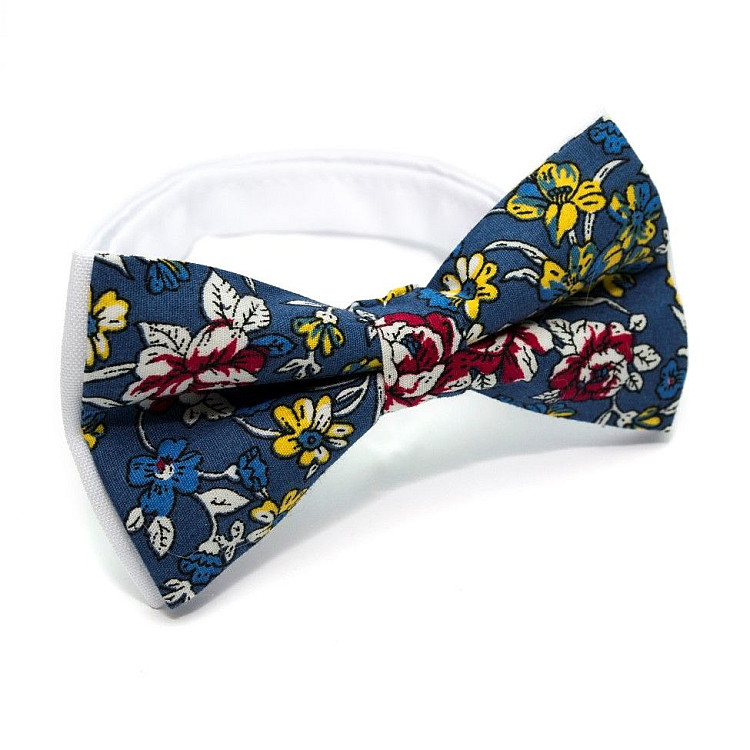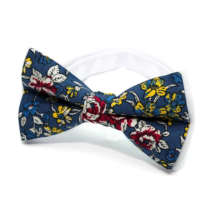 Галстук-бабочка синяя с цветами AB-211