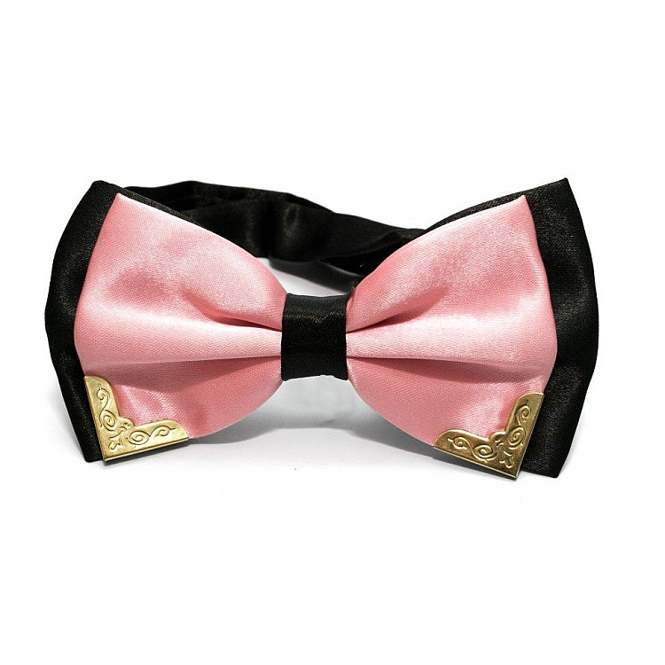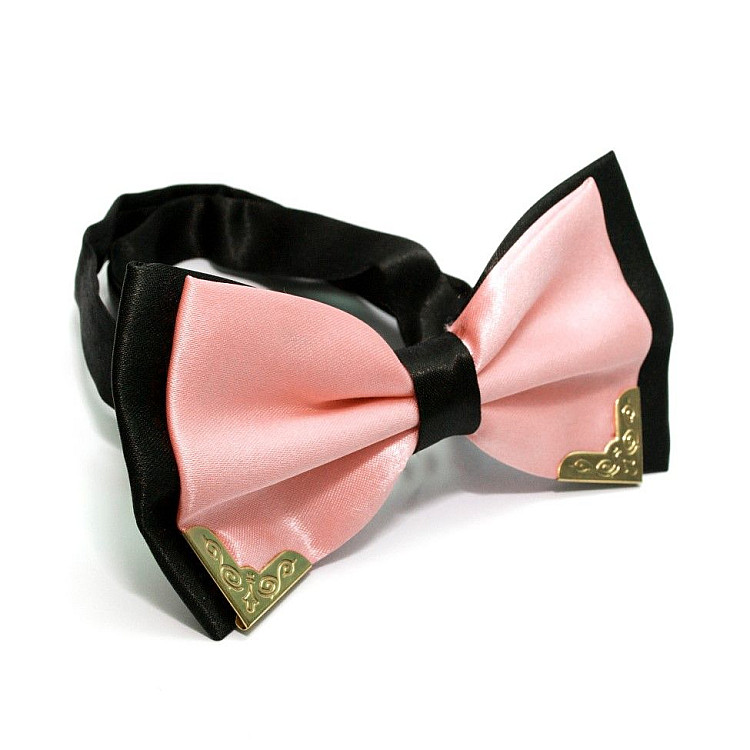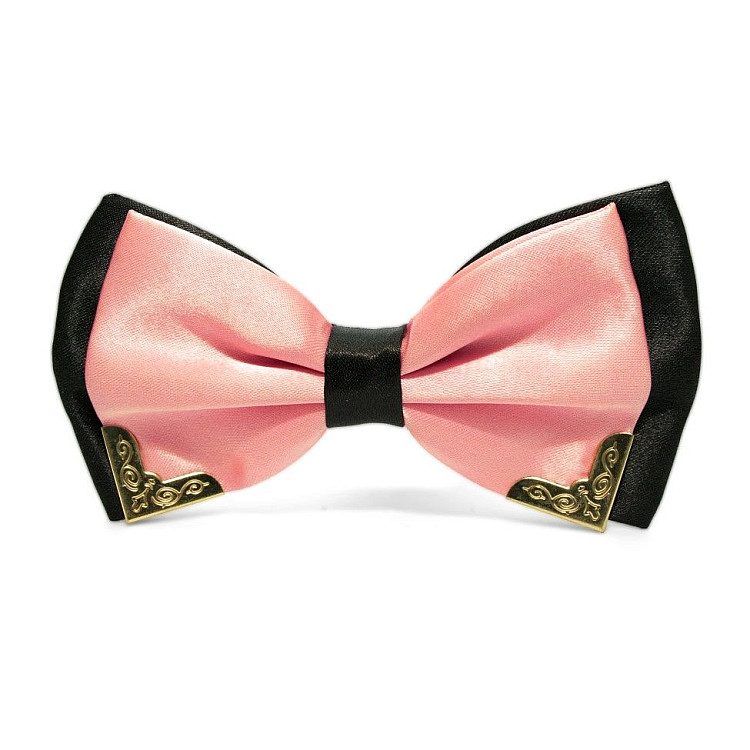 Галстук бабочка двухслойная розовая с металлическими углами Bj-7705