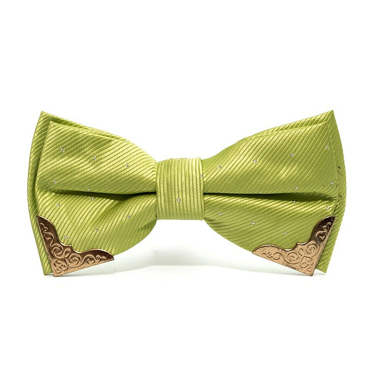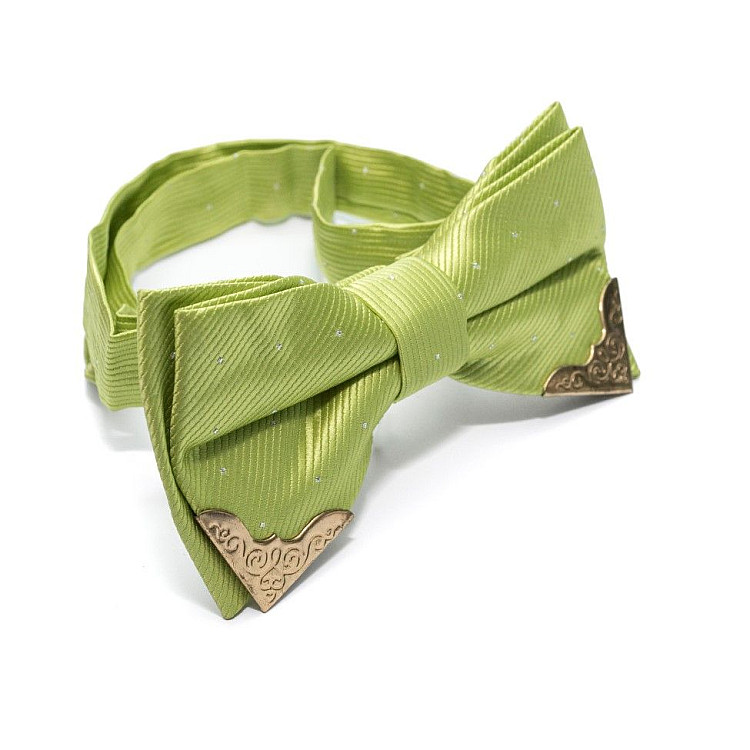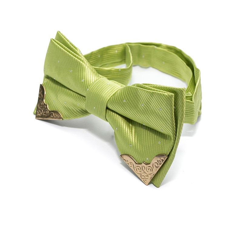 Галстук бабочка яблочно-зеленая с металлическими углами BB-5107