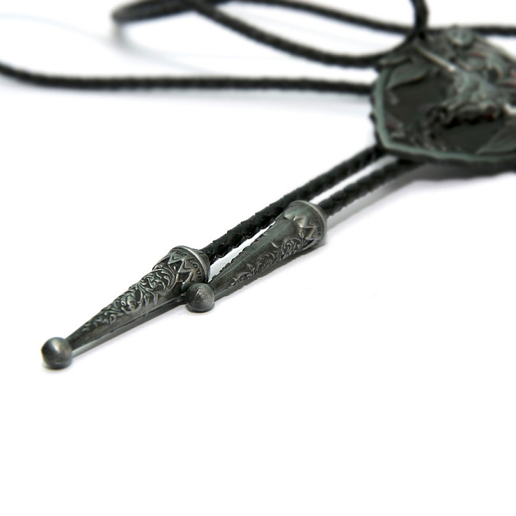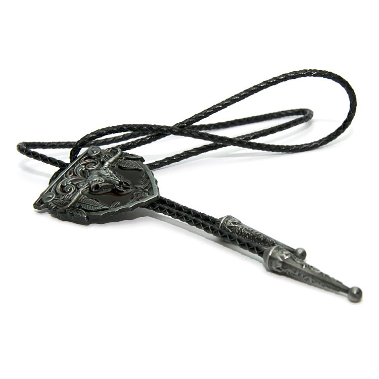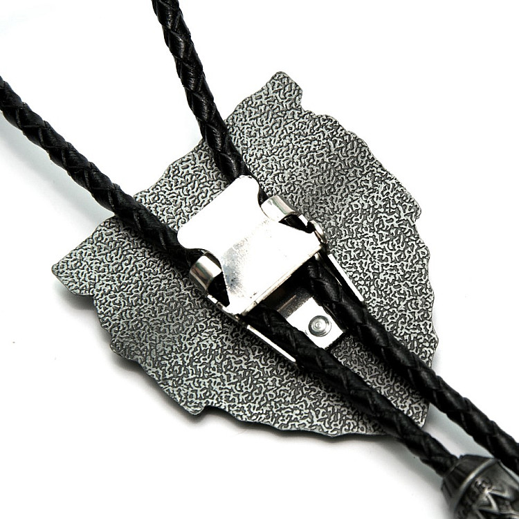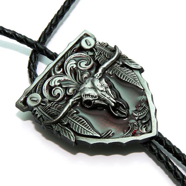 Боло представляет собой прочный кожаный шнурок длиной 94-95 см, скрепленный оригинальной брошью-пряжкой из нержавеющего металла. Брошь может изображать орла, коня, быка, маску, шляпу, звезду шерифа, крест и т.д. При покупке можно выбрать самый близкий по духу символ. Такие броши с изображениями духов-защитников носили североамериканские индейцы.