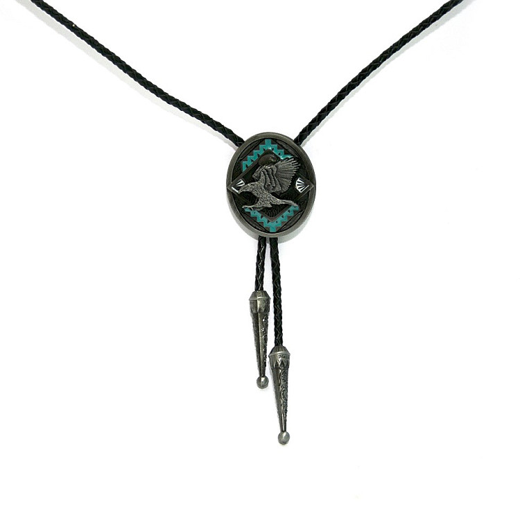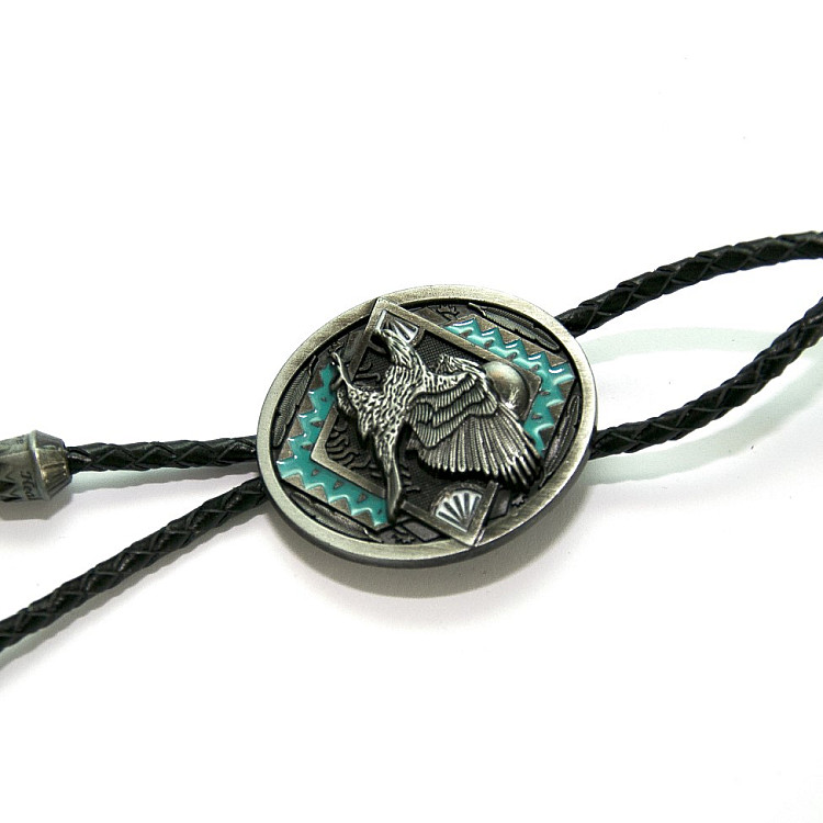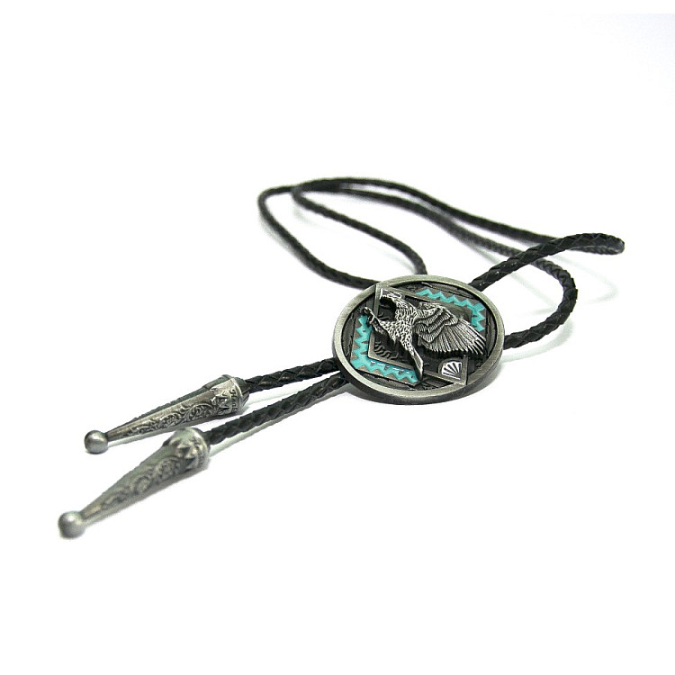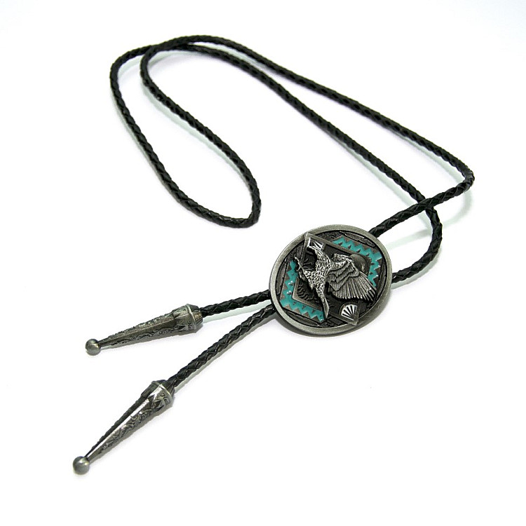 Боло представляет собой прочный кожаный шнурок длиной 94-95 см, скрепленный оригинальной брошью-пряжкой из нержавеющего металла. Брошь может изображать орла, коня, быка, маску, шляпу, звезду шерифа, крест и т.д. При покупке можно выбрать самый близкий по духу символ. Такие броши с изображениями духов-защитников носили североамериканские индейцы.