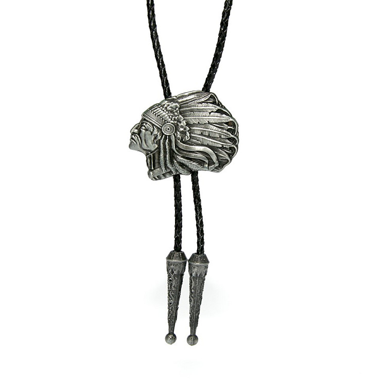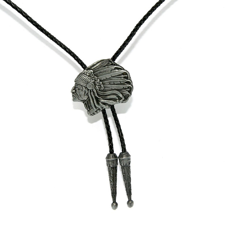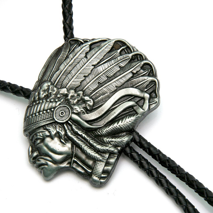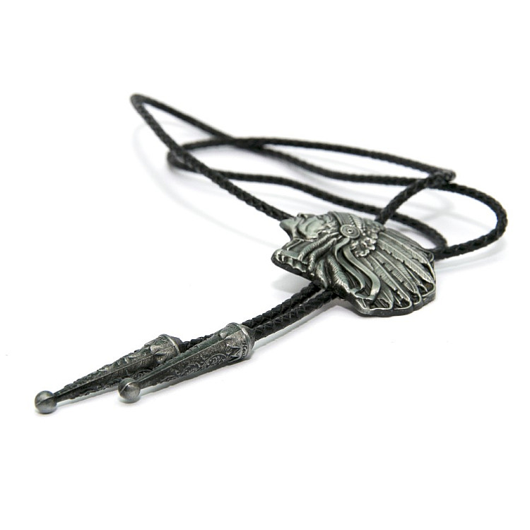Боло представляет собой прочный кожаный шнурок длиной 94-95 см, скрепленный оригинальной брошью-пряжкой из нержавеющего металла. Брошь может изображать орла, коня, быка, маску, шляпу, звезду шерифа, крест и т.д. При покупке можно выбрать самый близкий по духу символ. Такие броши с изображениями духов-защитников носили североамериканские индейцы.