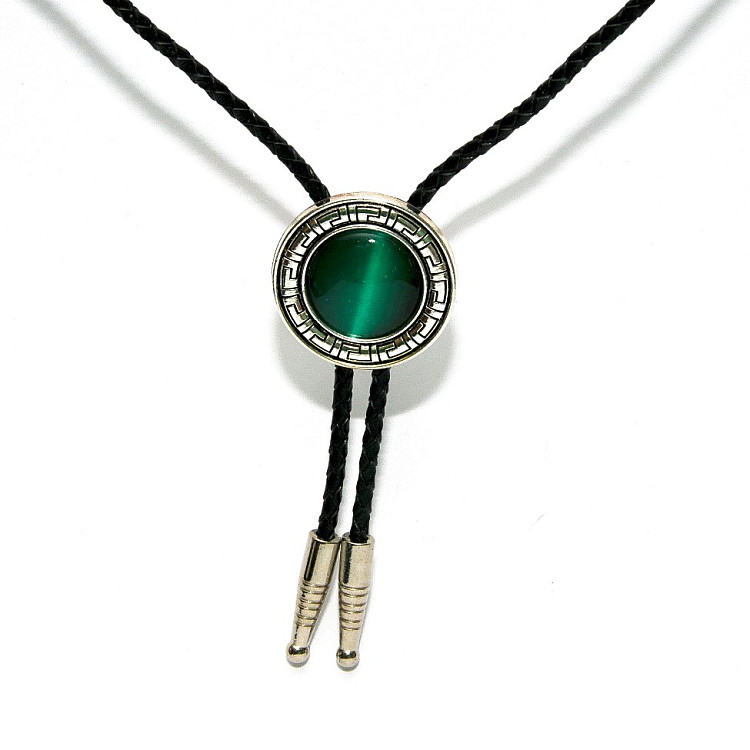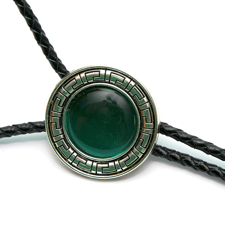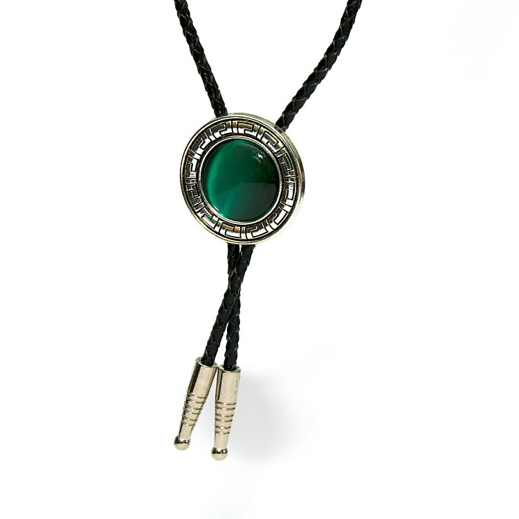Боло представляет собой прочный кожаный шнурок длиной 94-95 см, скрепленный оригинальной брошью-пряжкой из нержавеющего металла. Брошь может изображать орла, коня, быка, маску, шляпу, звезду шерифа, крест и т.д. При покупке можно выбрать самый близкий по духу символ. Такие броши с изображениями духов-защитников носили североамериканские индейцы.