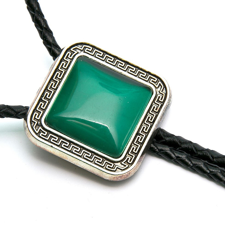 Боло представляет собой прочный кожаный шнурок длиной 94-95 см, скрепленный оригинальной брошью-пряжкой из нержавеющего металла. Брошь может изображать орла, коня, быка, маску, шляпу, звезду шерифа, крест и т.д. При покупке можно выбрать самый близкий по духу символ. Такие броши с изображениями духов-защитников носили североамериканские индейцы.
