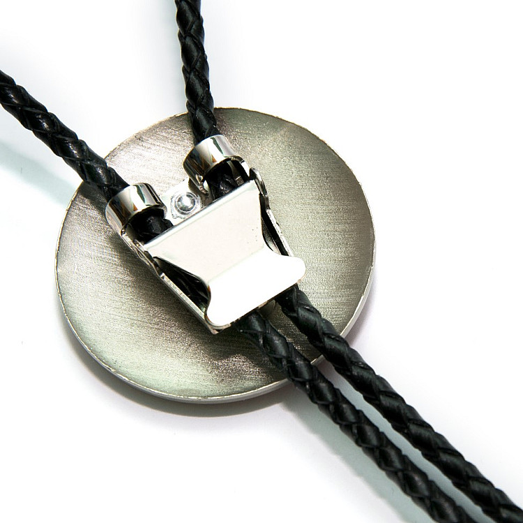 Боло представляет собой прочный кожаный шнурок длиной 94-95 см, скрепленный оригинальной брошью-пряжкой из нержавеющего металла. Брошь может изображать орла, коня, быка, маску, шляпу, звезду шерифа, крест и т.д. При покупке можно выбрать самый близкий по духу символ. Такие броши с изображениями духов-защитников носили североамериканские индейцы.