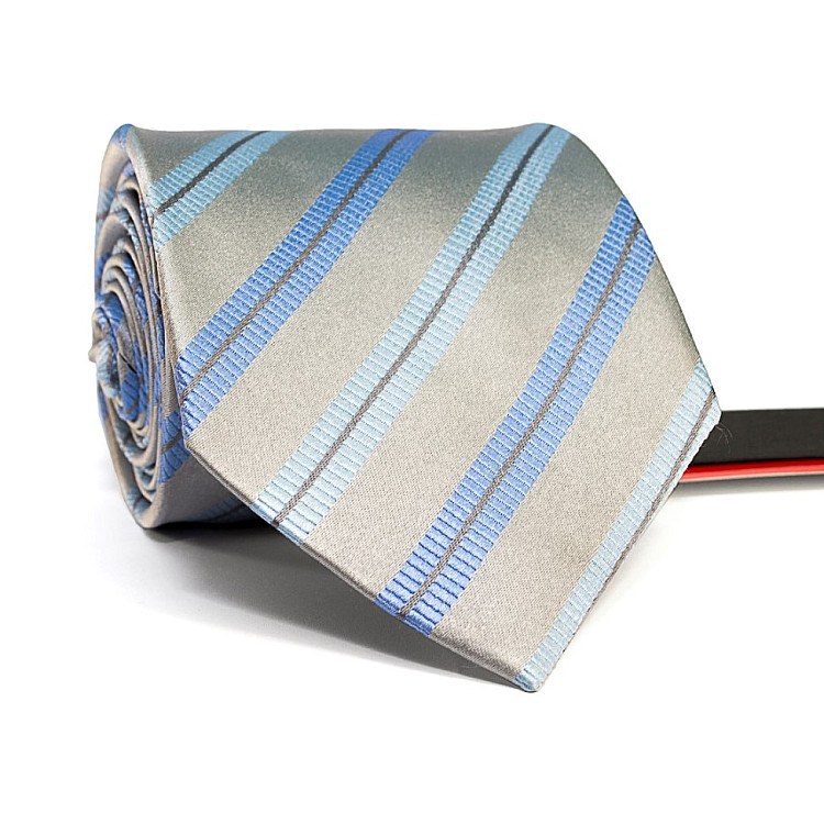 Галстук мужской серый с голубыми полосками Emilio Corali GIN-2562