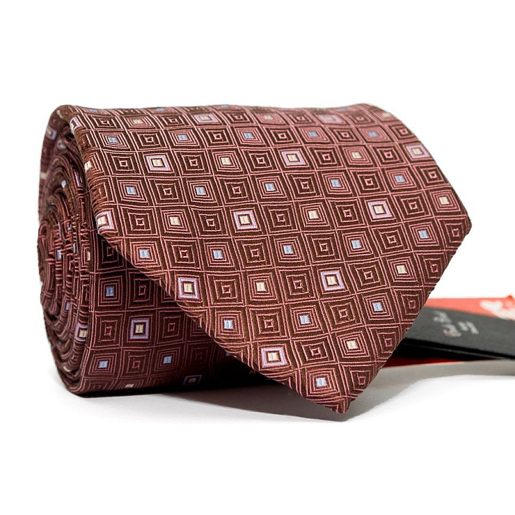 Галстук мужской Розово-Коричневый в квадратики Emilio Corali GIN-2429