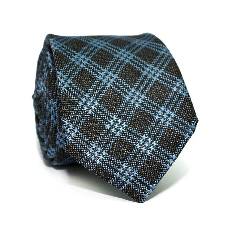 Узкий галстук Sakis Rouvas черный в голубую клетку GIN-2272