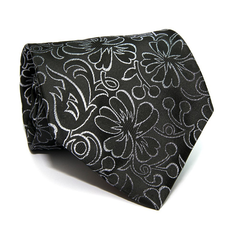 Галстук ZAGI черный с цветами ZN-1871