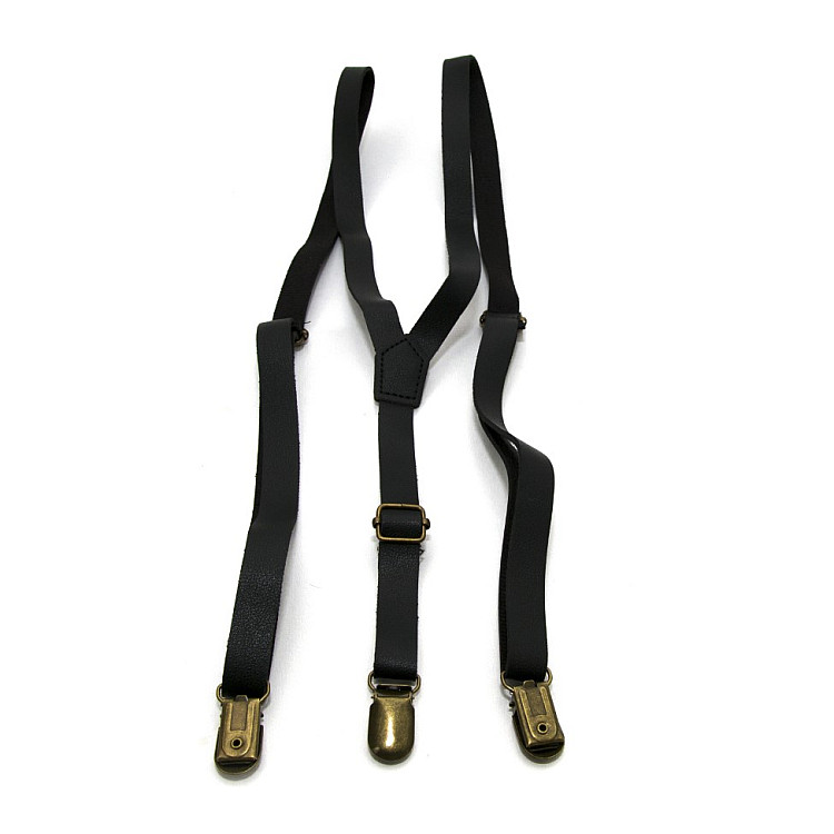 Эко кожаные подтяжки Gofin узкие черные 1,5 см PBK-33000