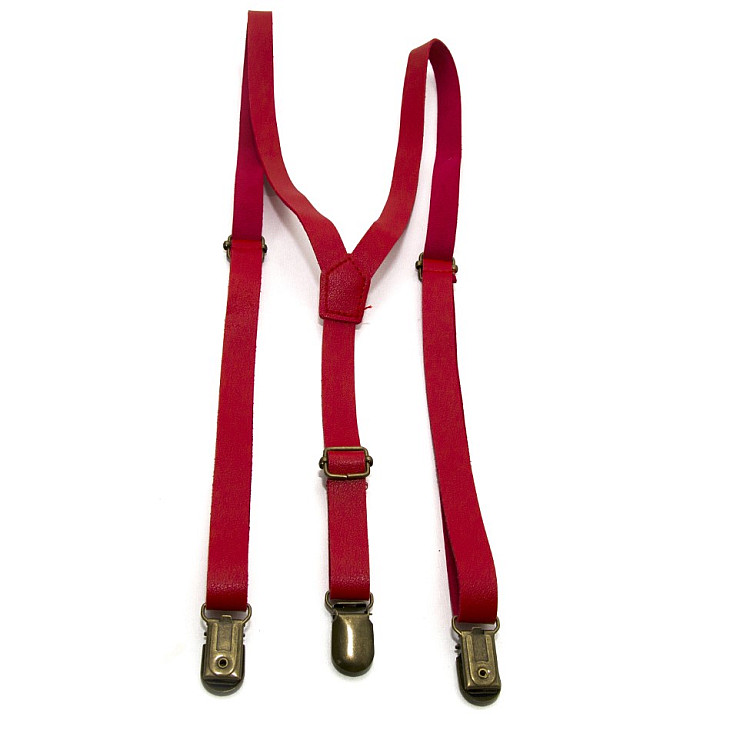Эко кожаные подтяжки Gofin узкие красные 1,5 см PBK-33004