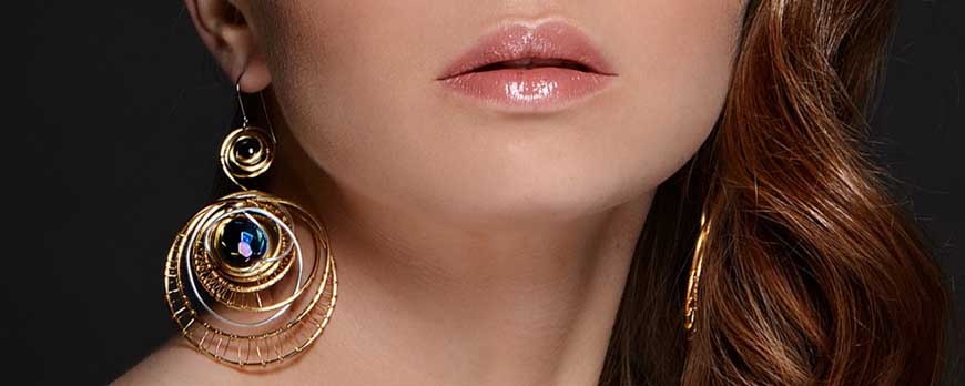 Днем в офис уместны тонкие колечки золотистого или серебристого цветов, вечерний выход в свет требует броских крупных сережек, украшенных жемчугом, полудрагоценными камнями, вставками или дополнительными подвесками.