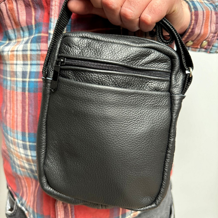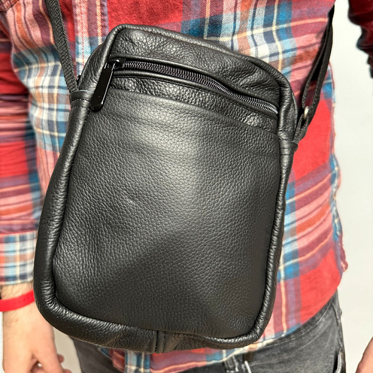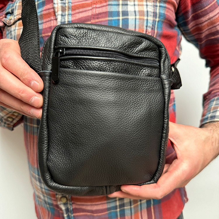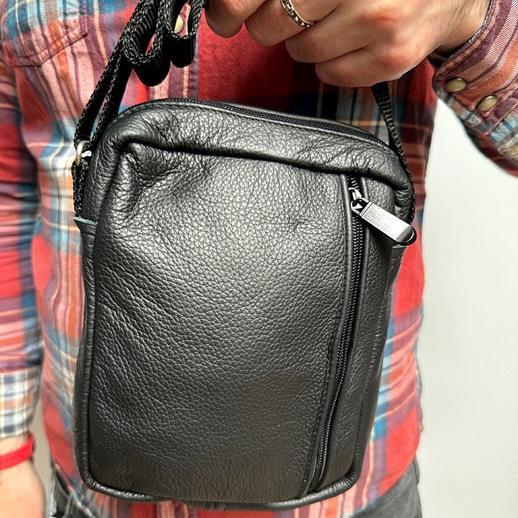 Кожаная сумка Gofin черная на плечо на четыре отделения 21х16 см SMK-20046
