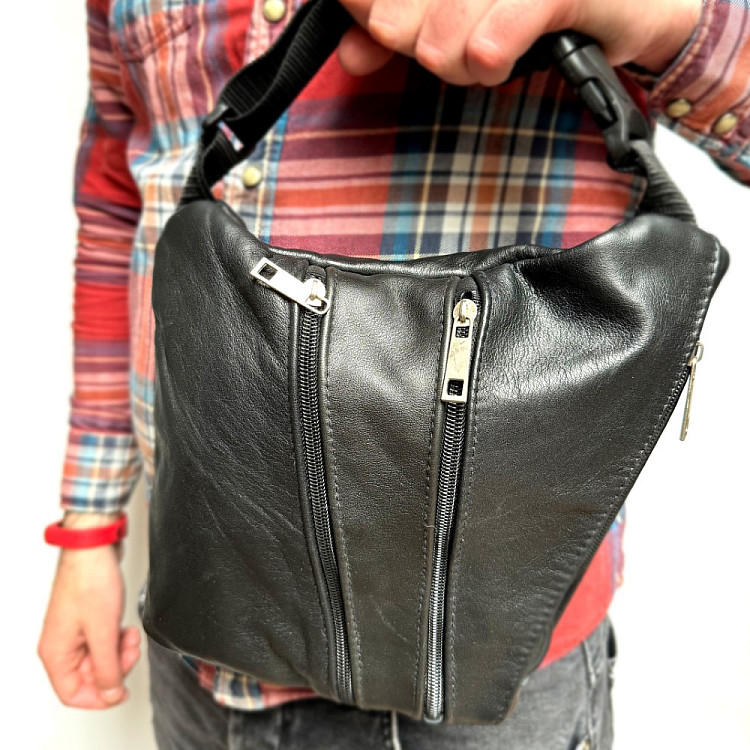 Спросите AI как лучше соединить Кожаная сумка Gofin черная на плечо на три замка 27х22 см SMK-20049 с вашим образом