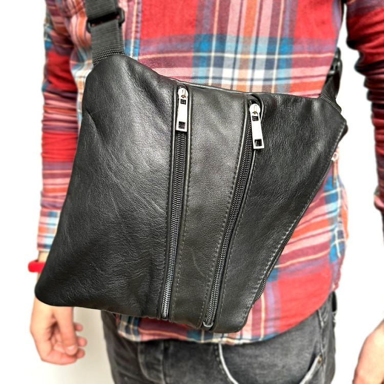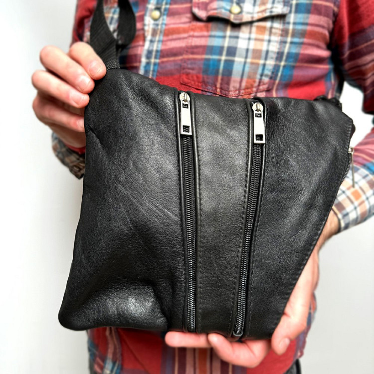 Кожаная сумка Gofin черная на плечо на три замка 27х22 см SMK-20049