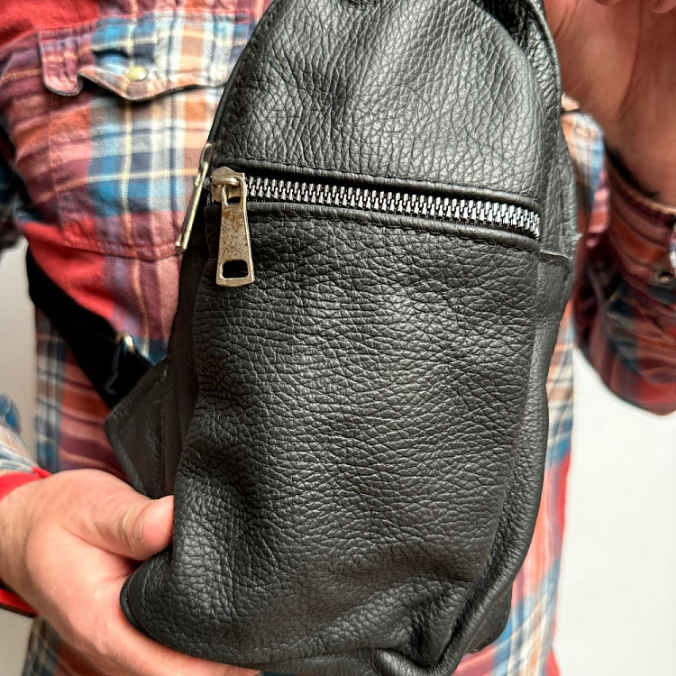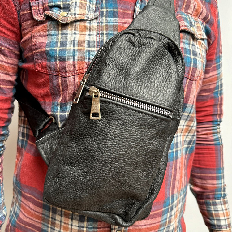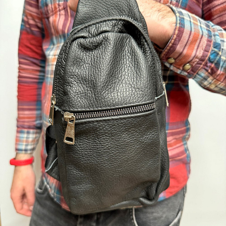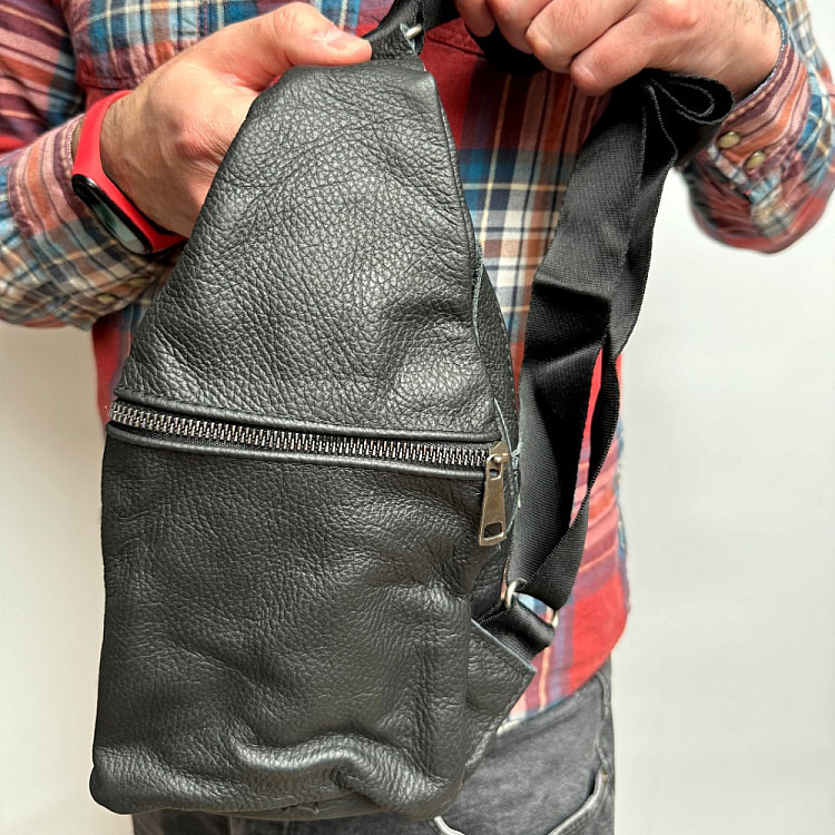 Кожаная сумка слинг Gofin черная на три замка 29х17 см SMK-20058