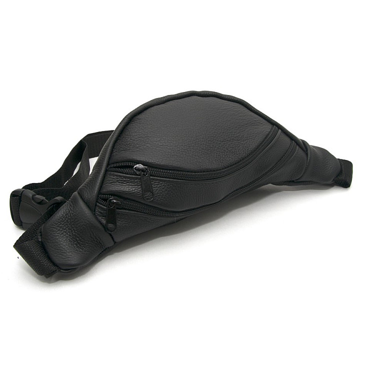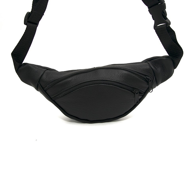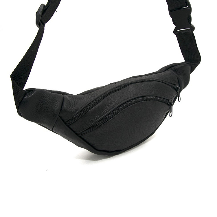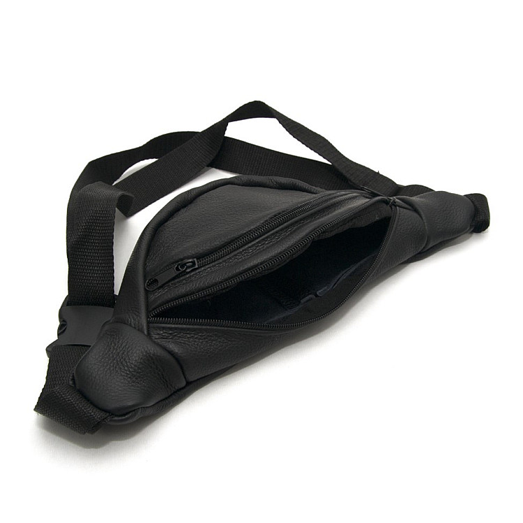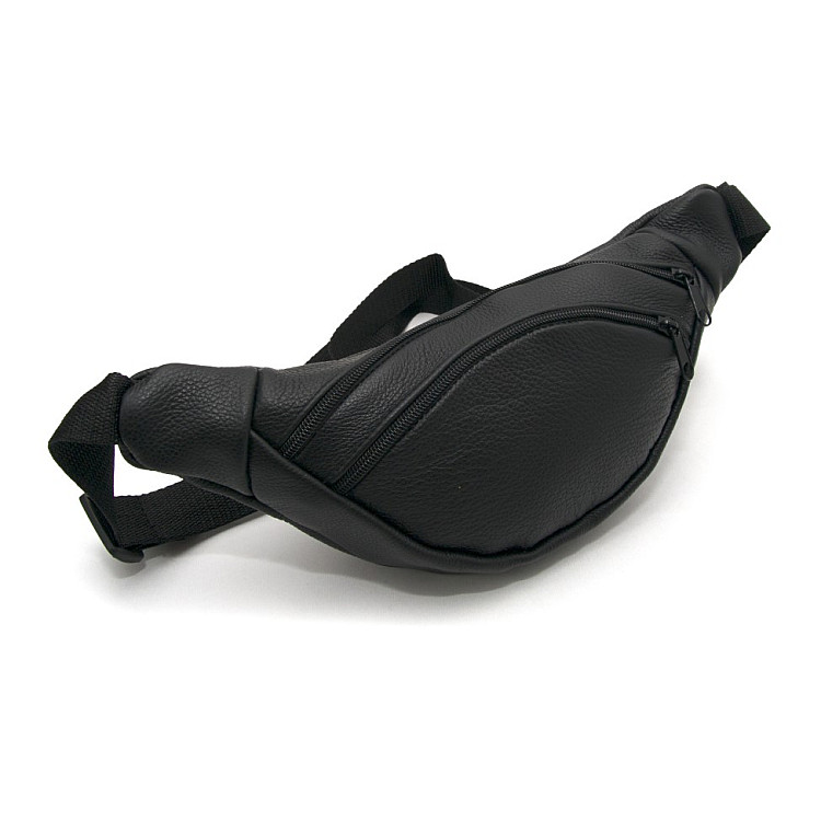 Бананка Gofin черная кожаная на два отделения SMK-20012