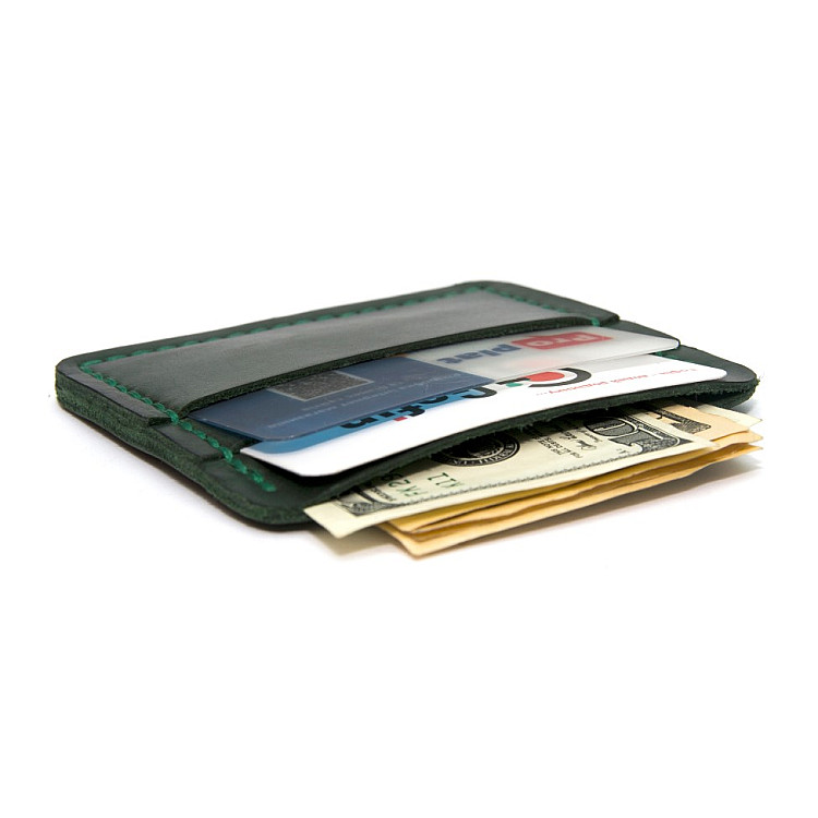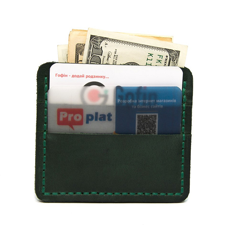 Кожаное зеленое портмоне-кард кейс Gofin SKG-10025