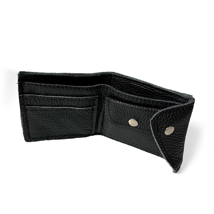 Классический кошелек обычно прямоугольный, со сгибом посередине. Легким движением руки он складывается и помещается практически в любой карман, не выпячивая его. Аксессуар не откроется самостоятельно – этому препятствует замок-кнопка.