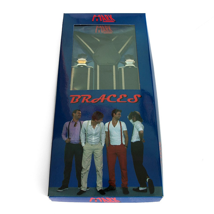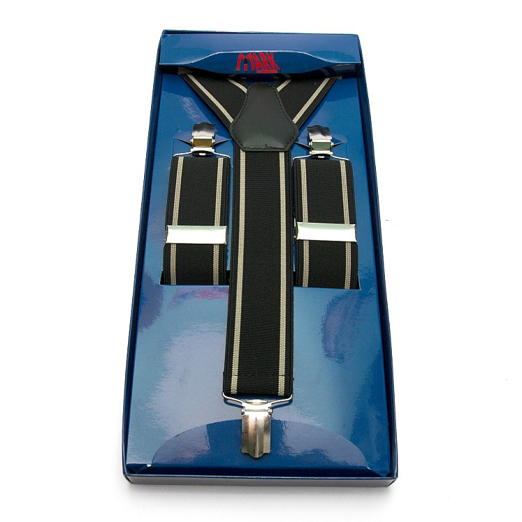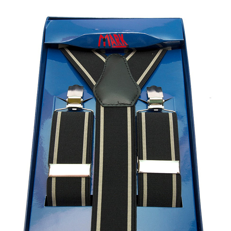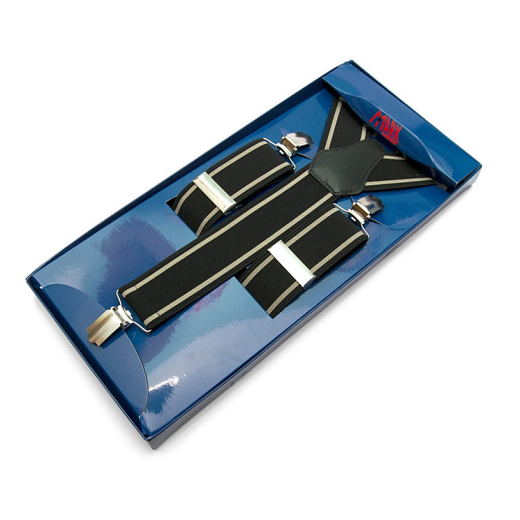 Мужские подтяжки Gofin Y образные черные с бежєвой полоской подарочные PU-0482