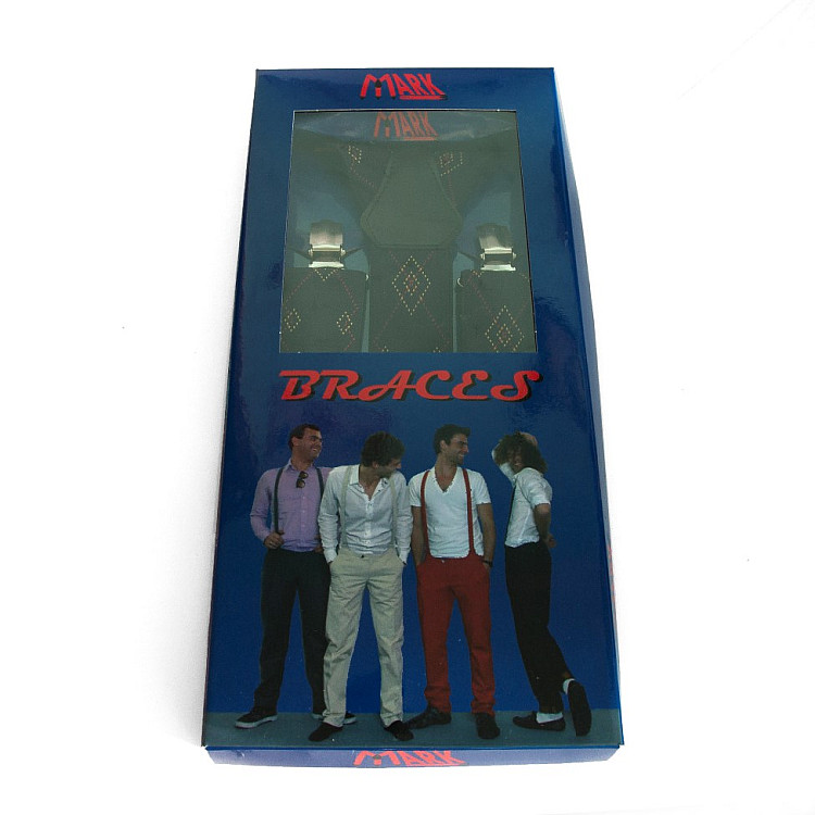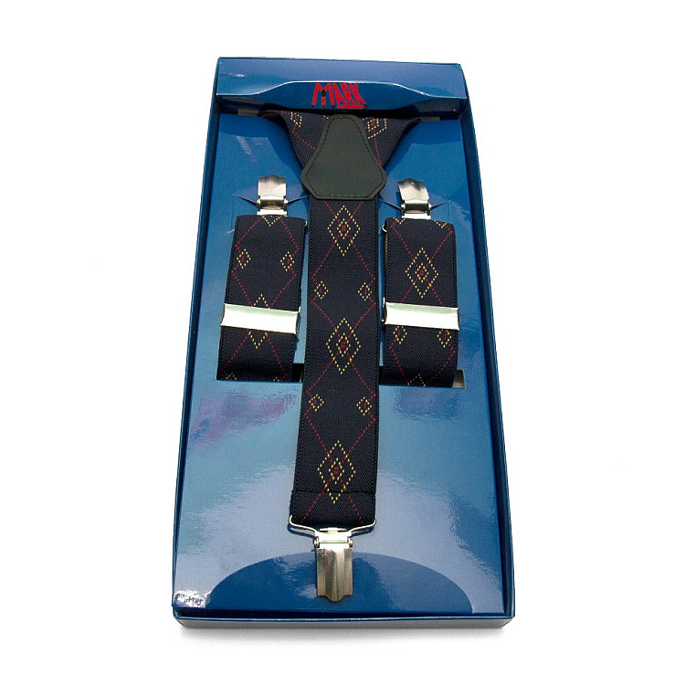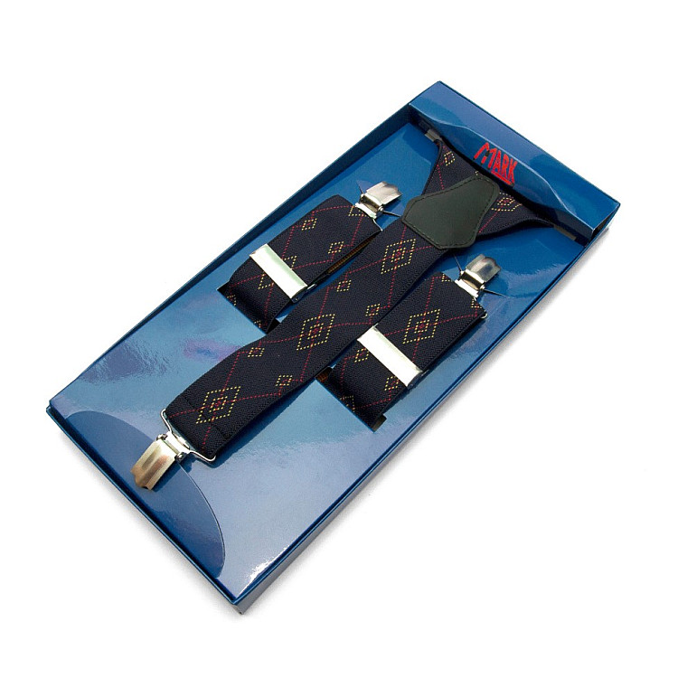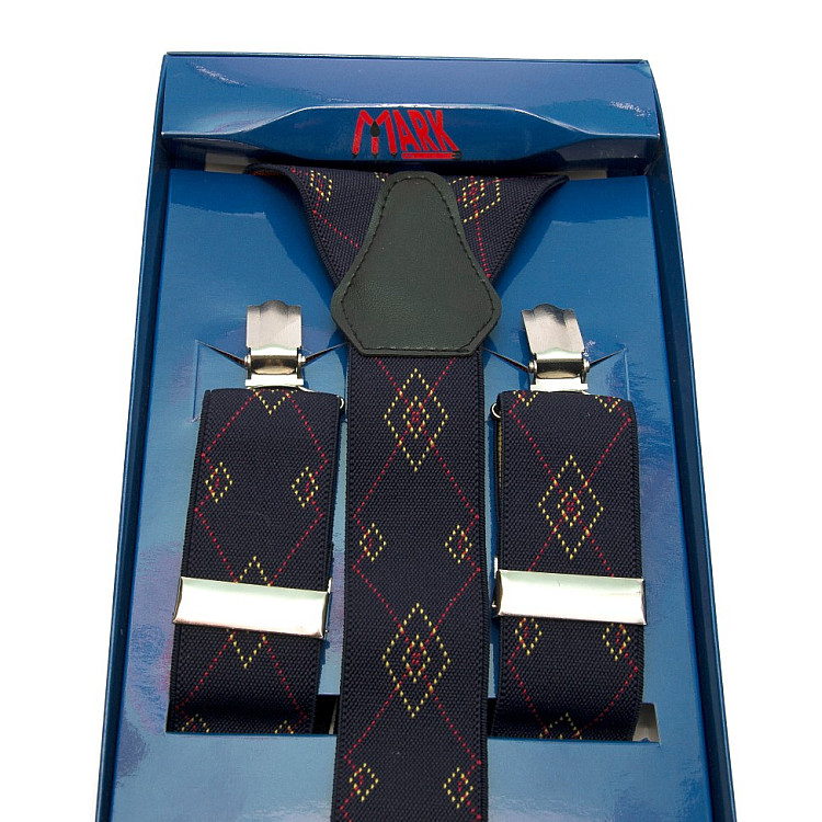 Мужские подтяжки Gofin Y образные темно-синие з ромбами подарочные PU-0489