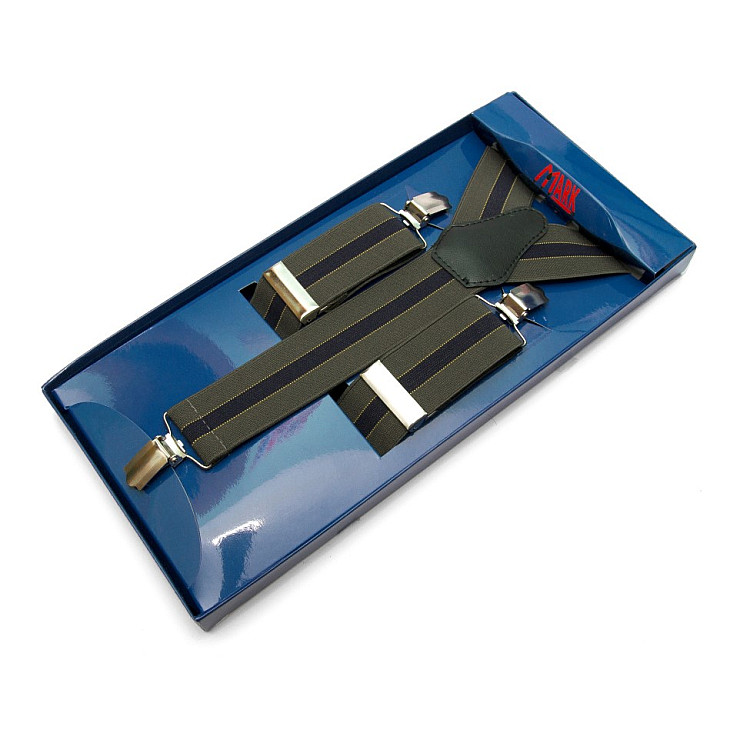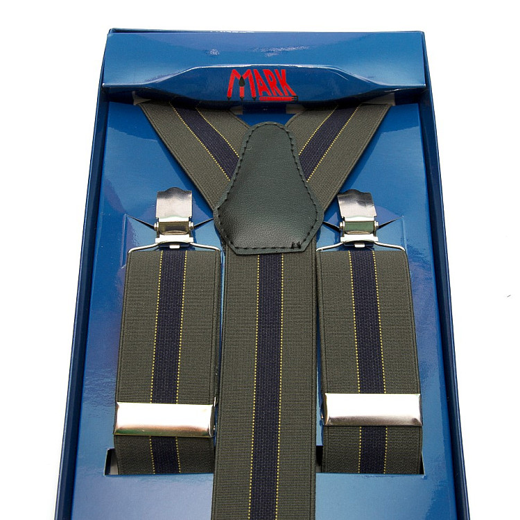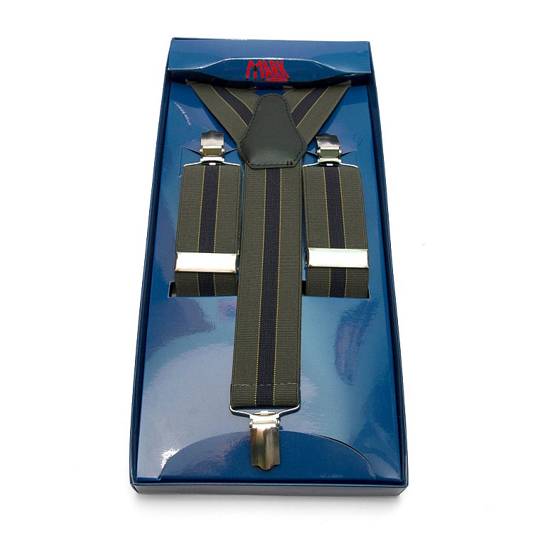 Мужские подтяжки Gofin Y образные зеленые с черной полоской подарочные PU-0481