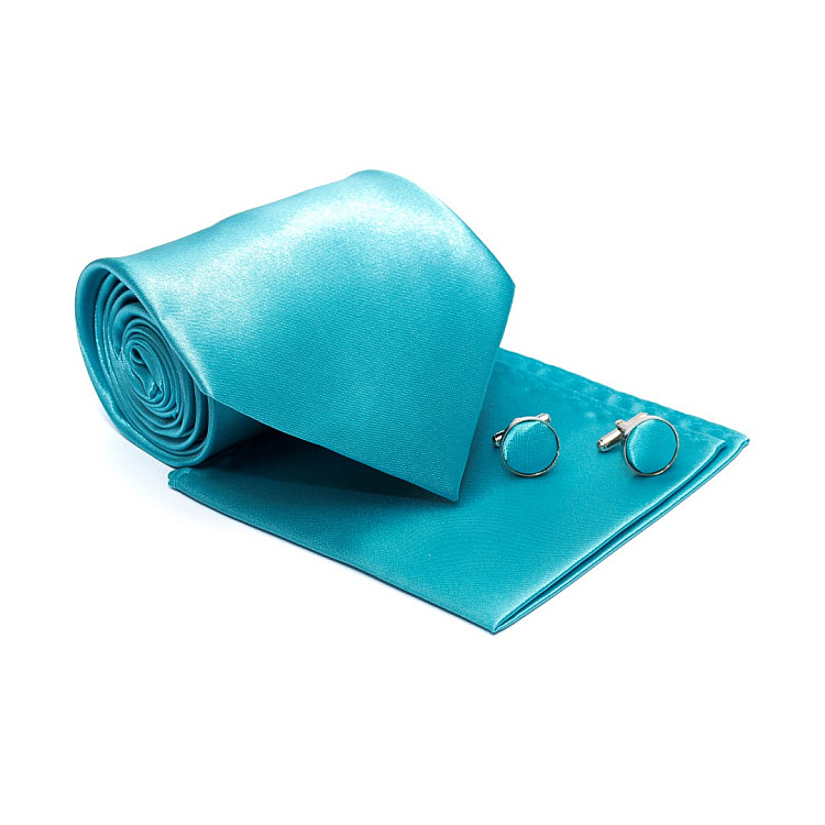 Набор бирюзовый 3в1, галстук, платок, запонки GZN-6304