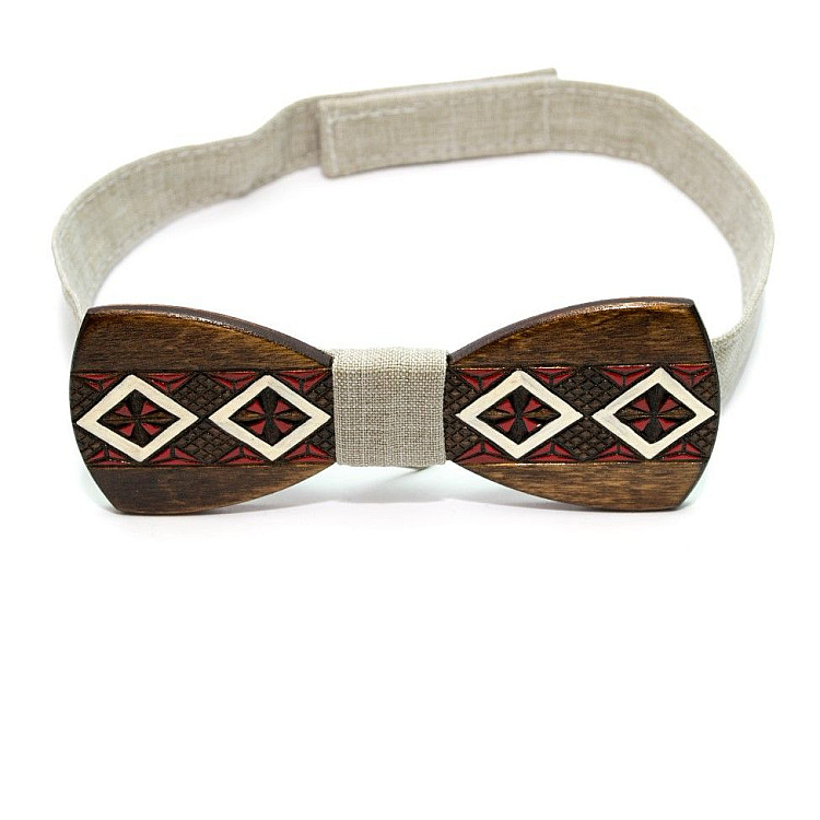 Деревянные бабочки позволяют играть с контрастом, если основа и поясок – разного оттенка. Основа может сохранять оригинальную древесную текстуру и цвет, также на нее наносят краску и даже вышивку!