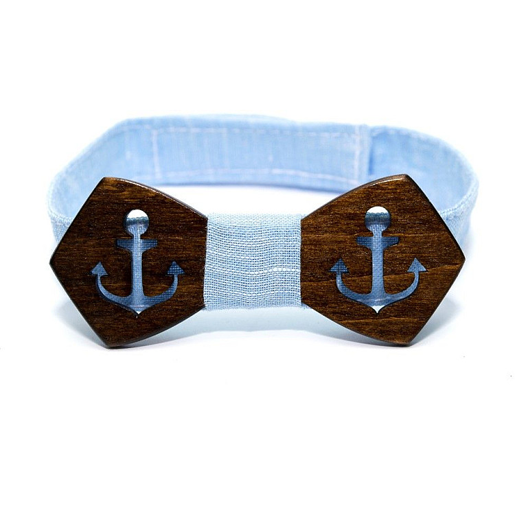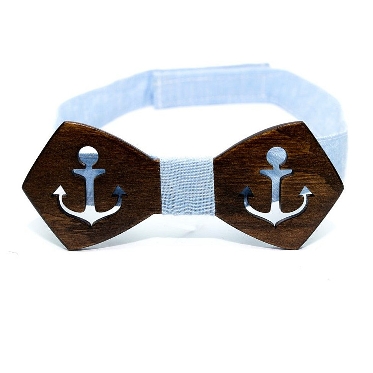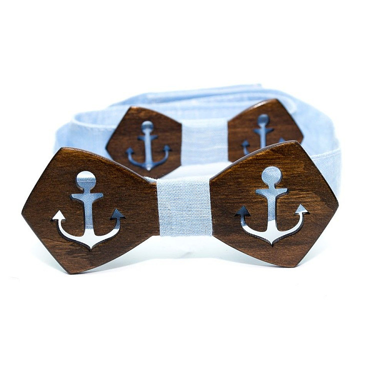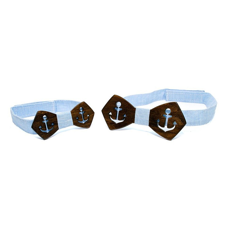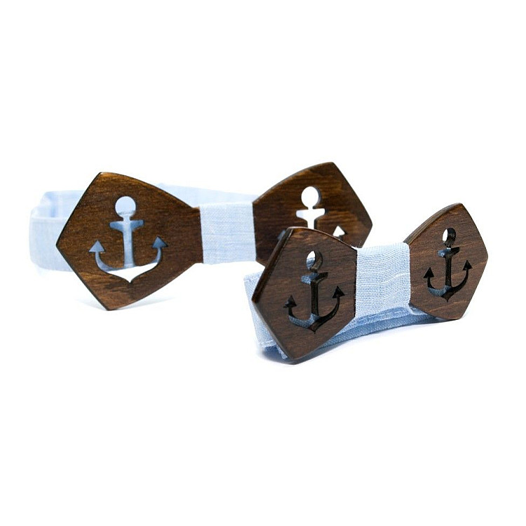 Набор деревянная галстук бабочка Gofin для сына и отца с якорем GBDH-9026