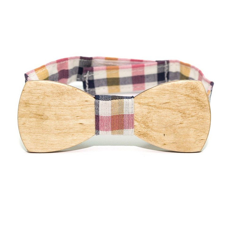 Деревянные бабочки позволяют играть с контрастом, если основа и поясок – разного оттенка. Основа может сохранять оригинальную древесную текстуру и цвет, также на нее наносят краску и даже вышивку!