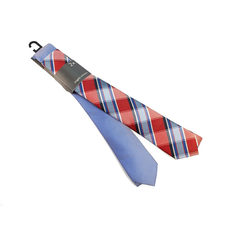 Набор галстуков 2в1 синий, красный в клетку CA-4015