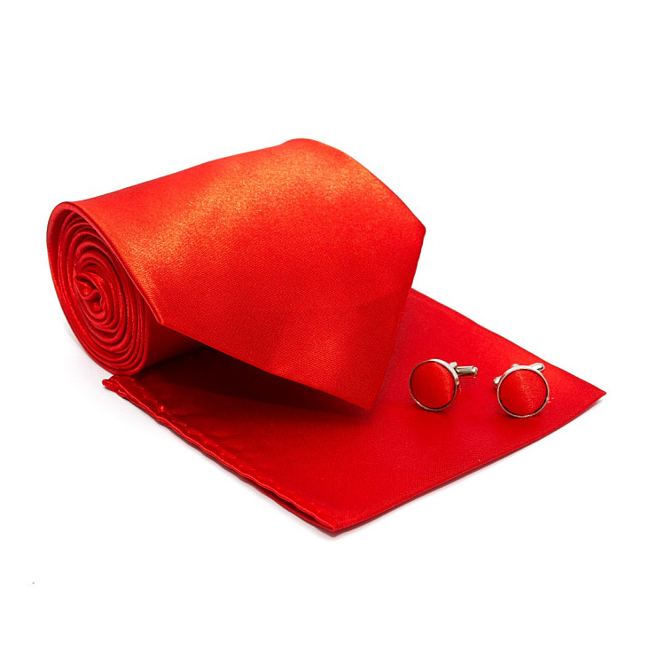 Набор красный 3в1, галстук, платок, запонки GZN-6301