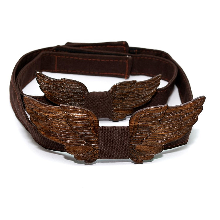 Деревянные бабочки позволяют играть с контрастом, если основа и поясок – разного оттенка. Основа может сохранять оригинальную древесную текстуру и цвет, также на нее наносят краску и даже вышивку!