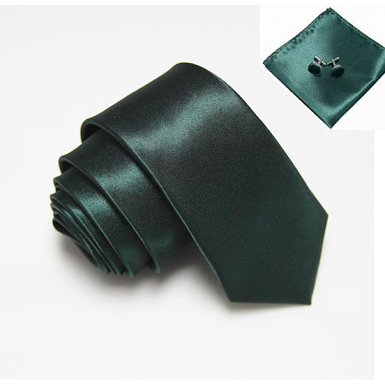 Набор изумрудный, узкий галстук, платок, запонки GZP-3504