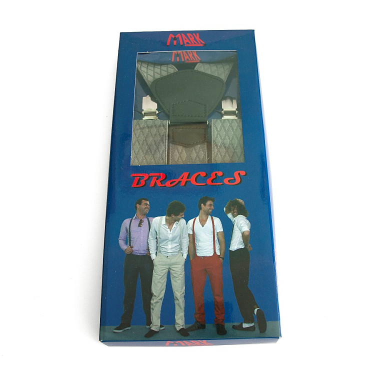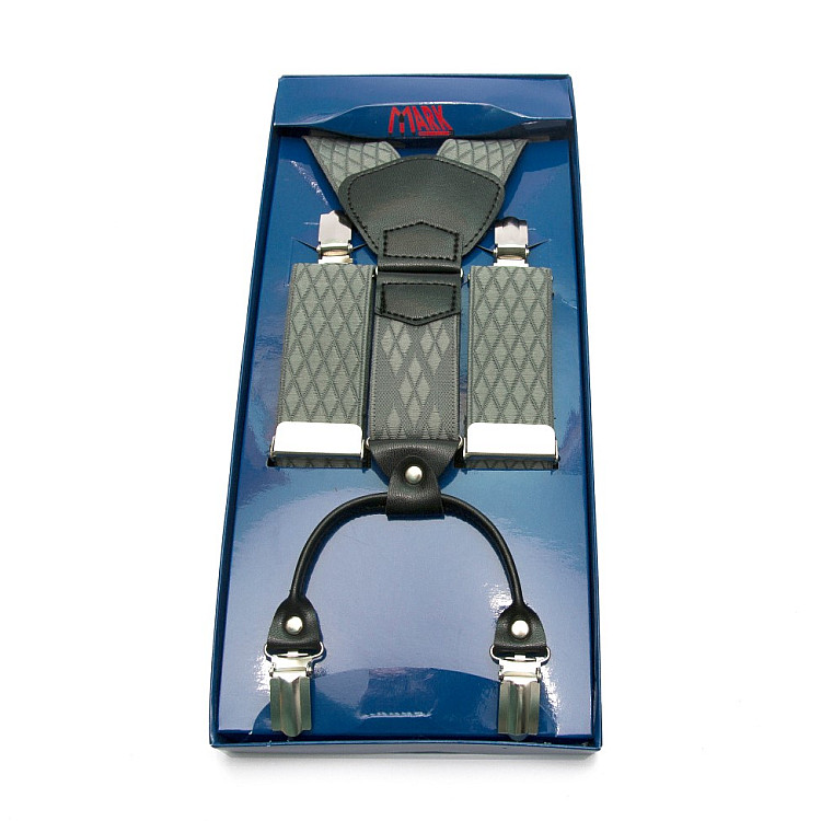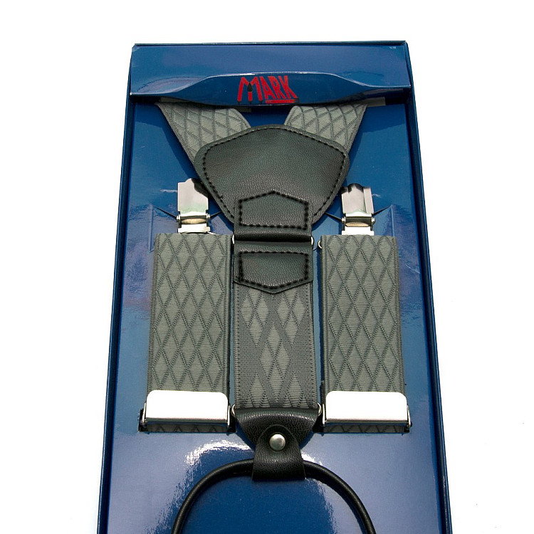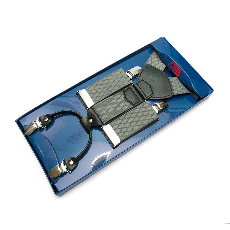Спросите AI как лучше соединить Подарочные мужские подтяжки Gofin Y образные в серые ромбики PU-0441 с вашим образом