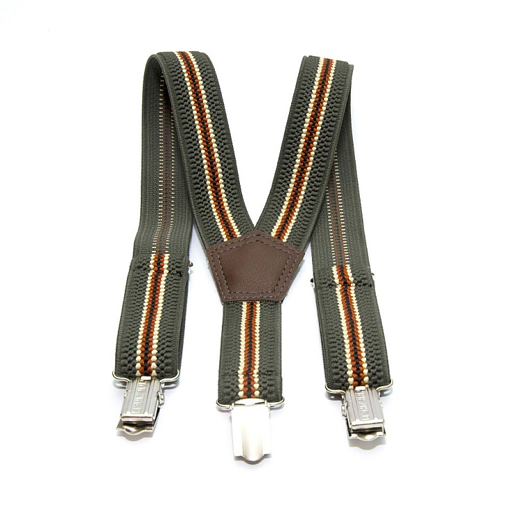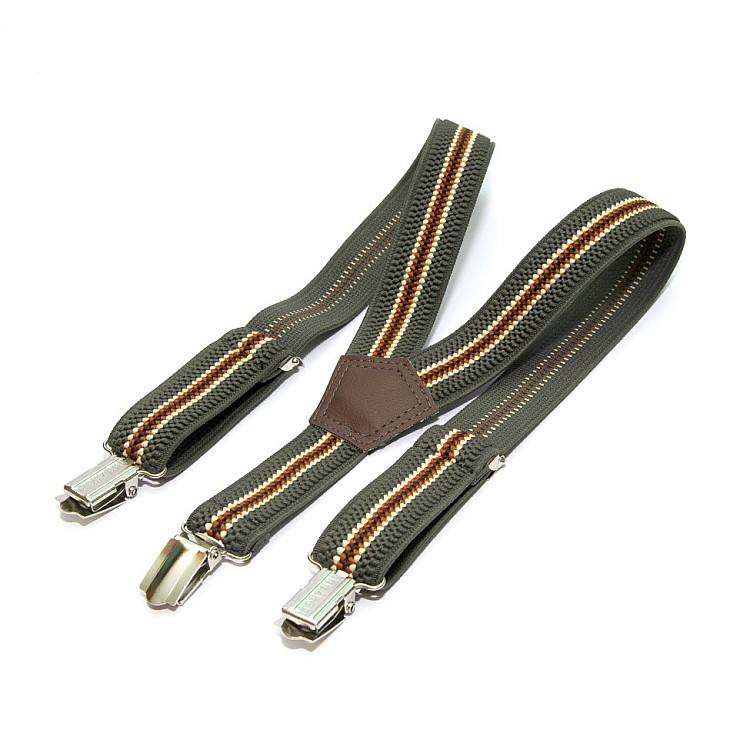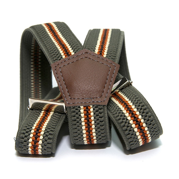 Подтяжки Gofin детские цвета Хаки в желтые и оранжевые полоски PBD-099