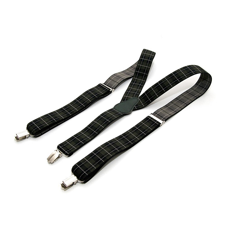 Подтяжки Gofin темно-зеленые в клетку Y образные 3,5 см PBM-19032