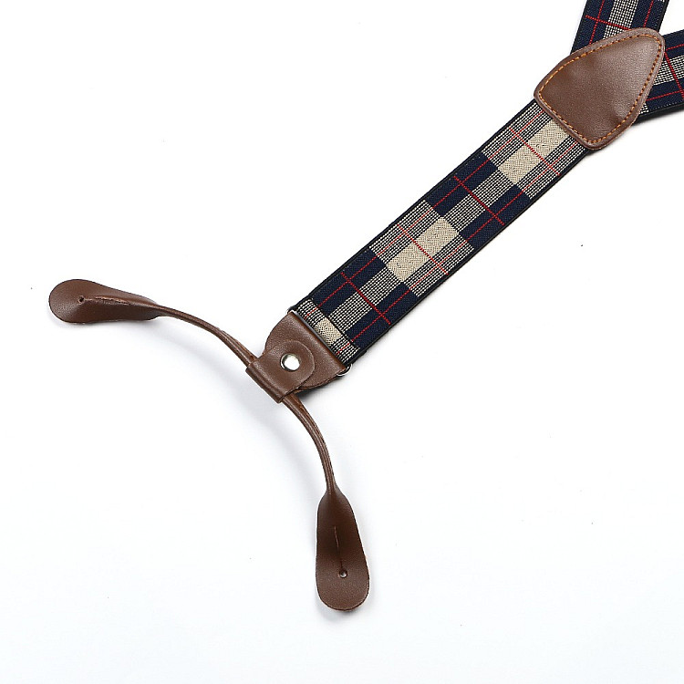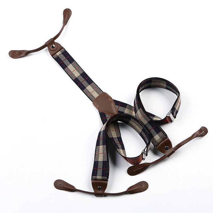 Подтяжки на пуговицу сине бежевые в клетку PNP-5827