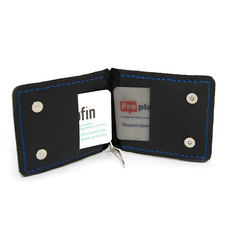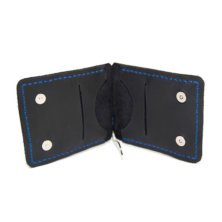 Темно-синий кожаный зажым для денег с магнитом Gofin SKG-10039