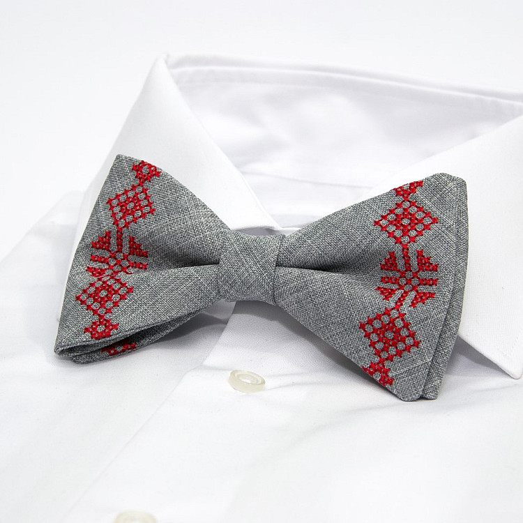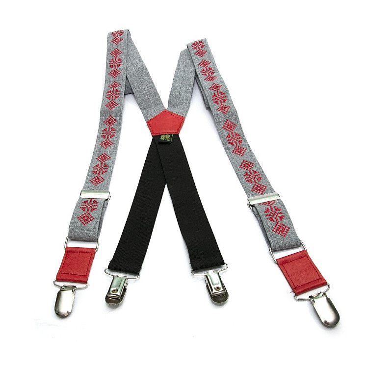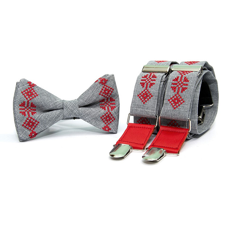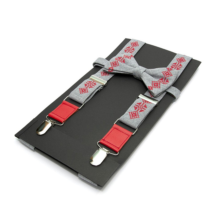 Вышитые подтяжки с бабочкой серые №844 NR-3729