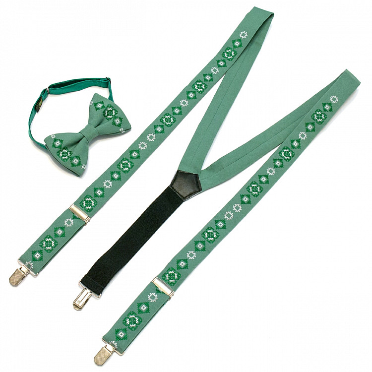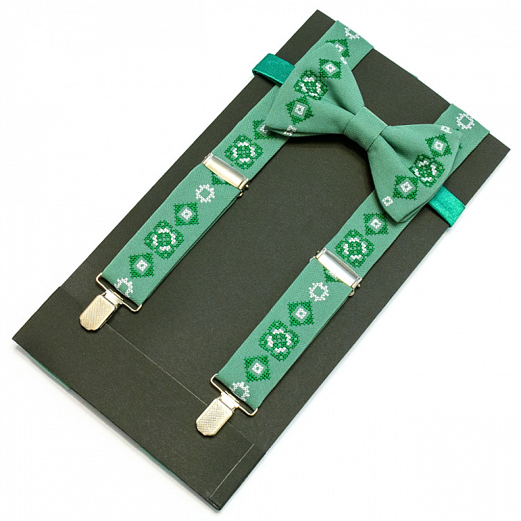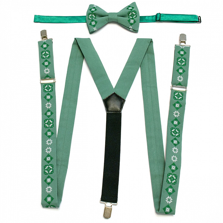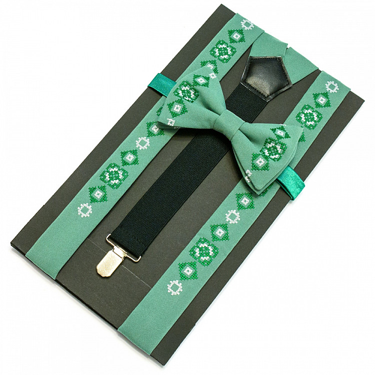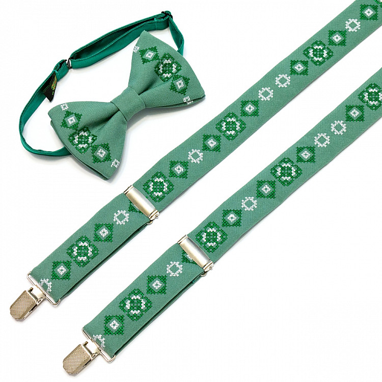Вышитые подтяжки с бабочкой мятные NR-3710