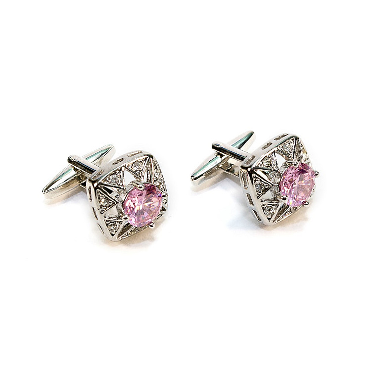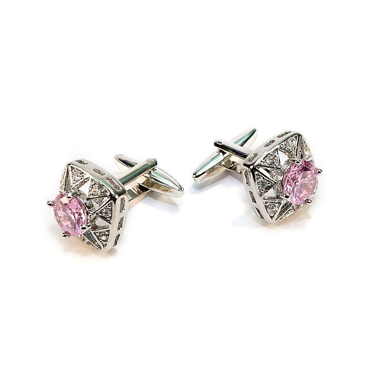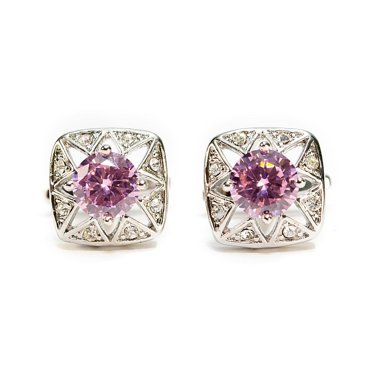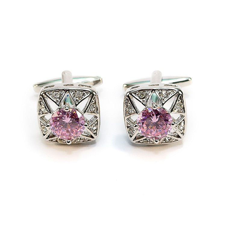 Запонки с розовым камушком ZPH-1216