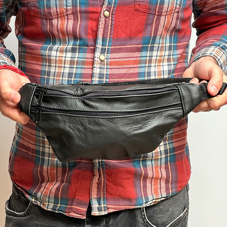 Шкіряна сумка бананка Gofin чорна на два замка 32х15 см SMK-20069