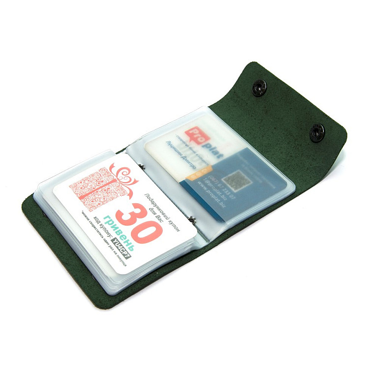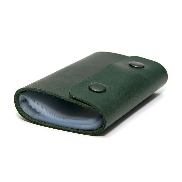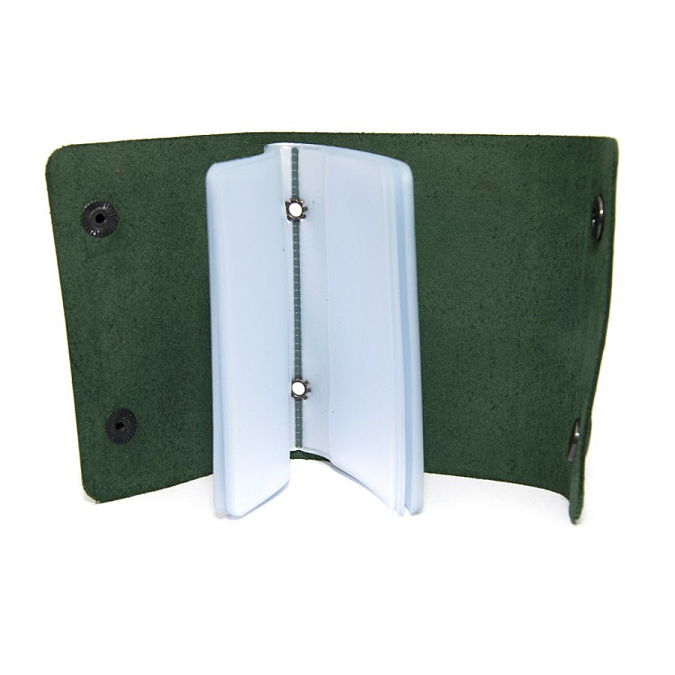 Шкіряна зелена візитниця книжка на дві кнопки Gofin SKG-10034