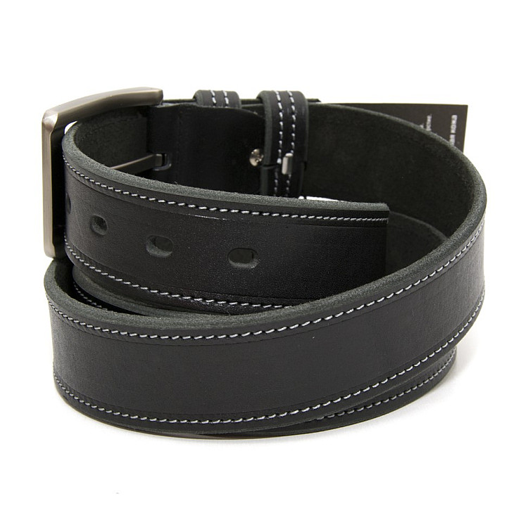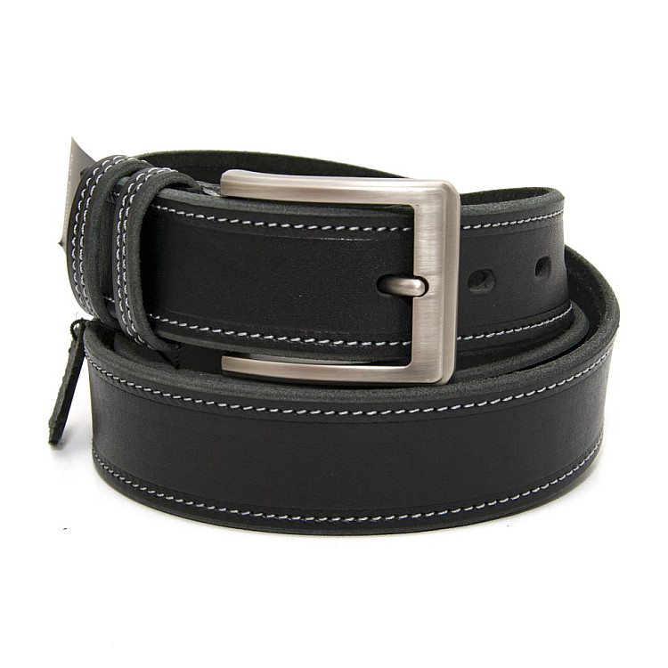 Шкіряний чорний чоловічий ремінь під джинси з сірими нитками RGNA-5081