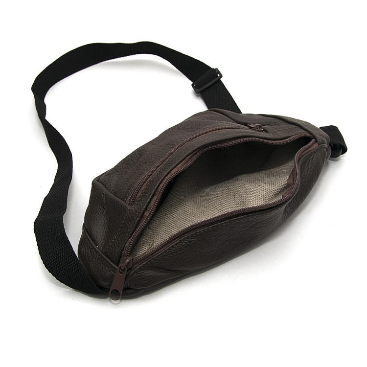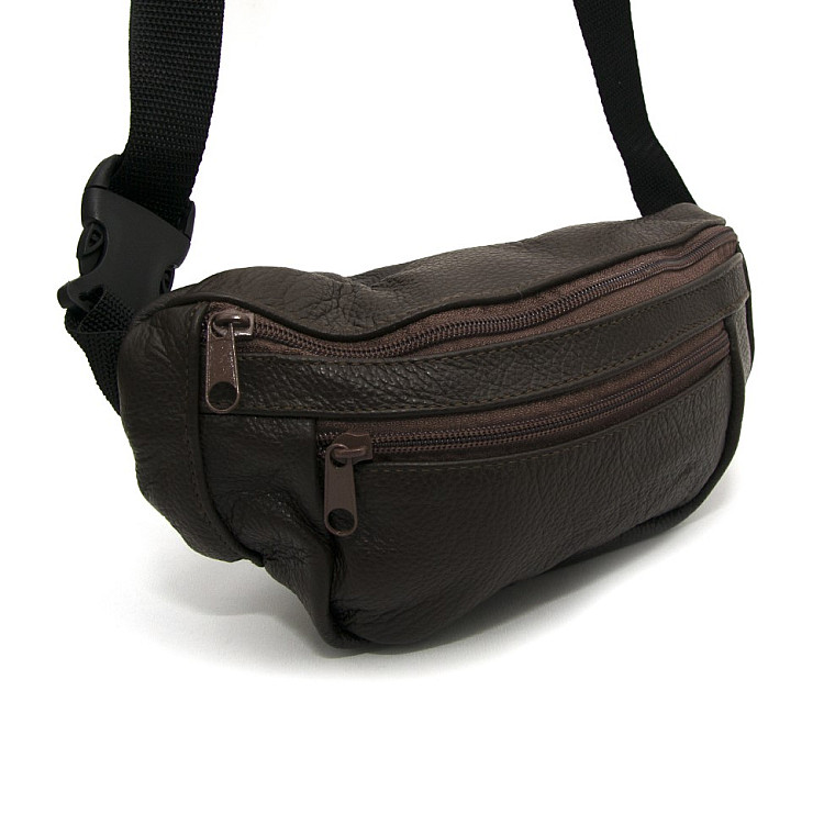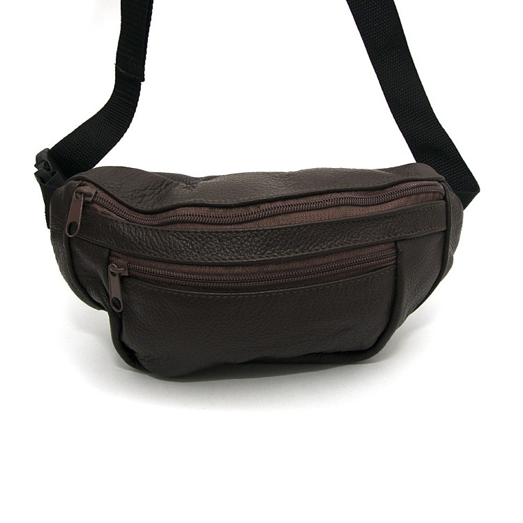 Бананка Gofin темно-коричнева шкіряна на три відділення SMK-20019