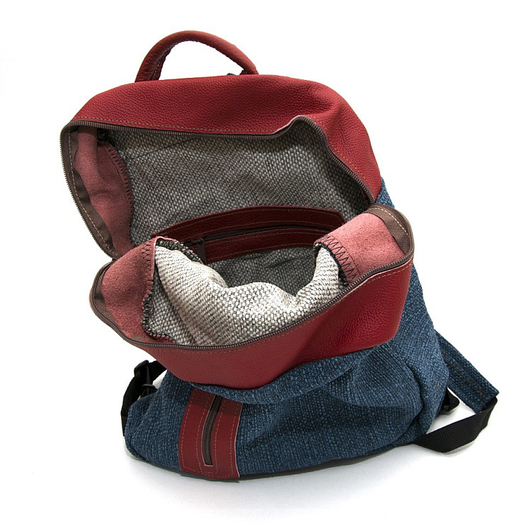 Запитайте AI як краще поєднати Тканинний темно-бірюзовий рюкзак Gofin з червоними вставками SMR-22047 з вашим образом