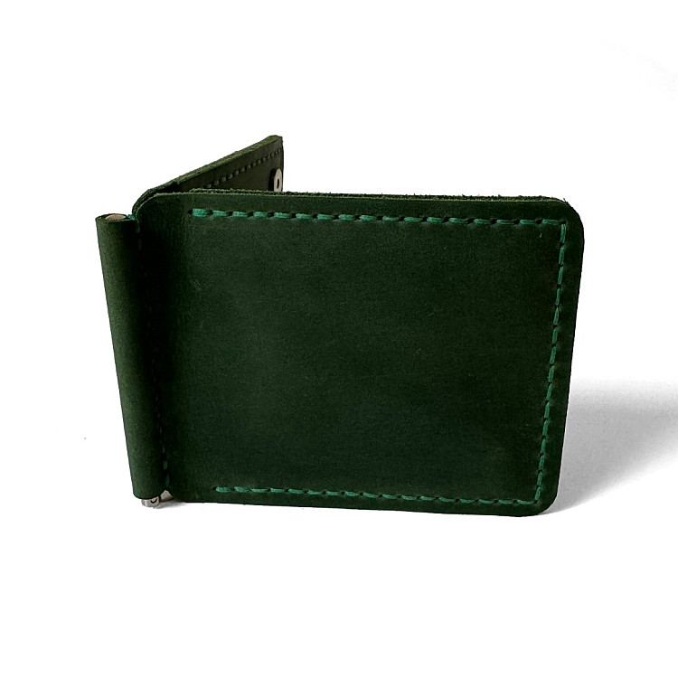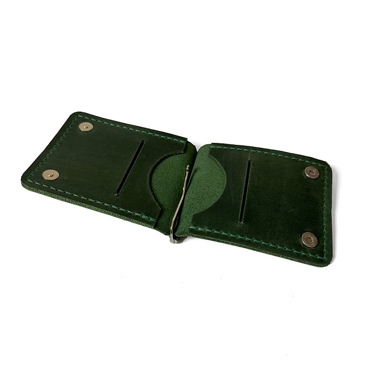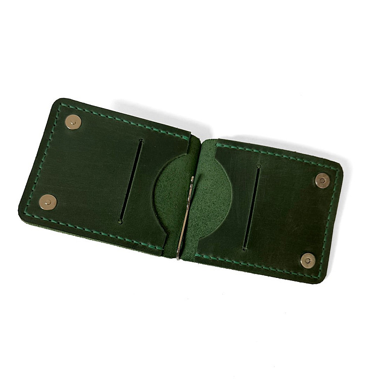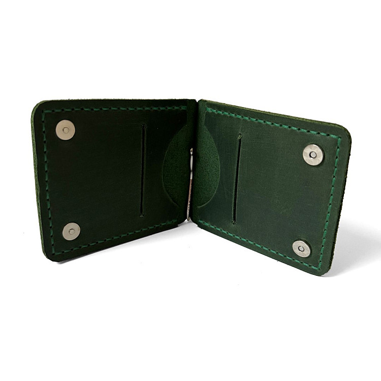 Зелений шкіряний зажим для грошей на магніт Gofin SKG-10046