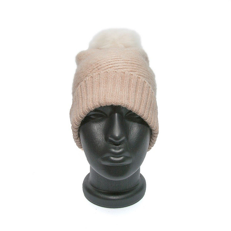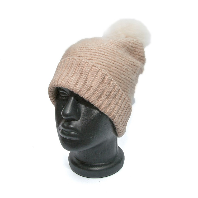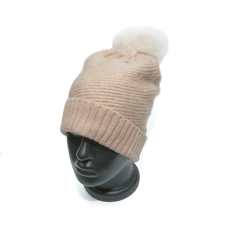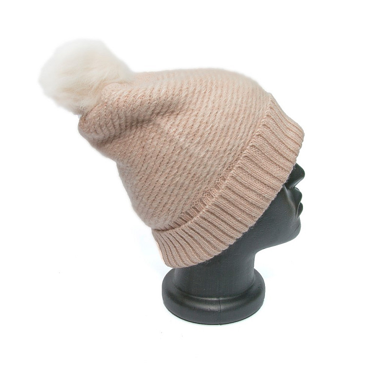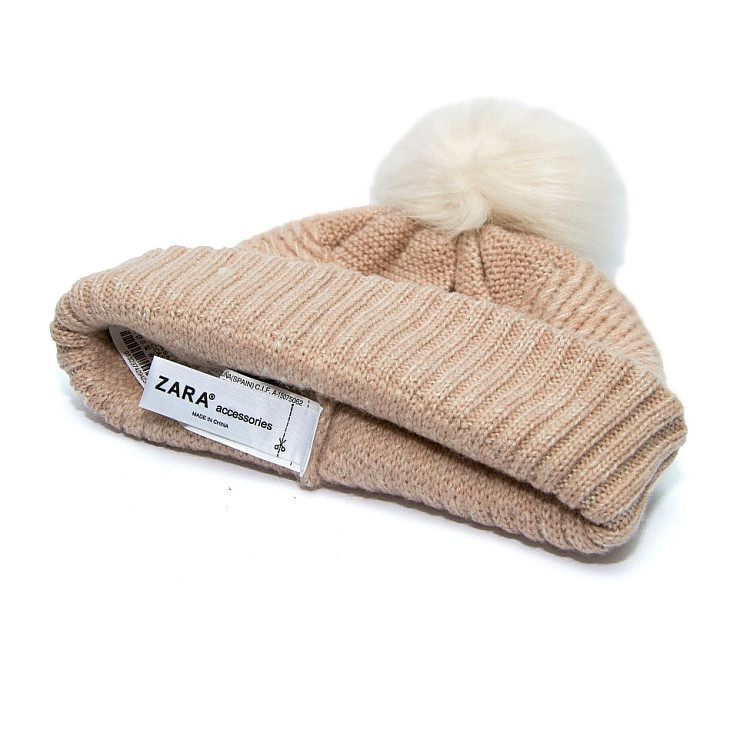 Жіноча шапка Zara блідно рожева з бамбоном 1323-742-942